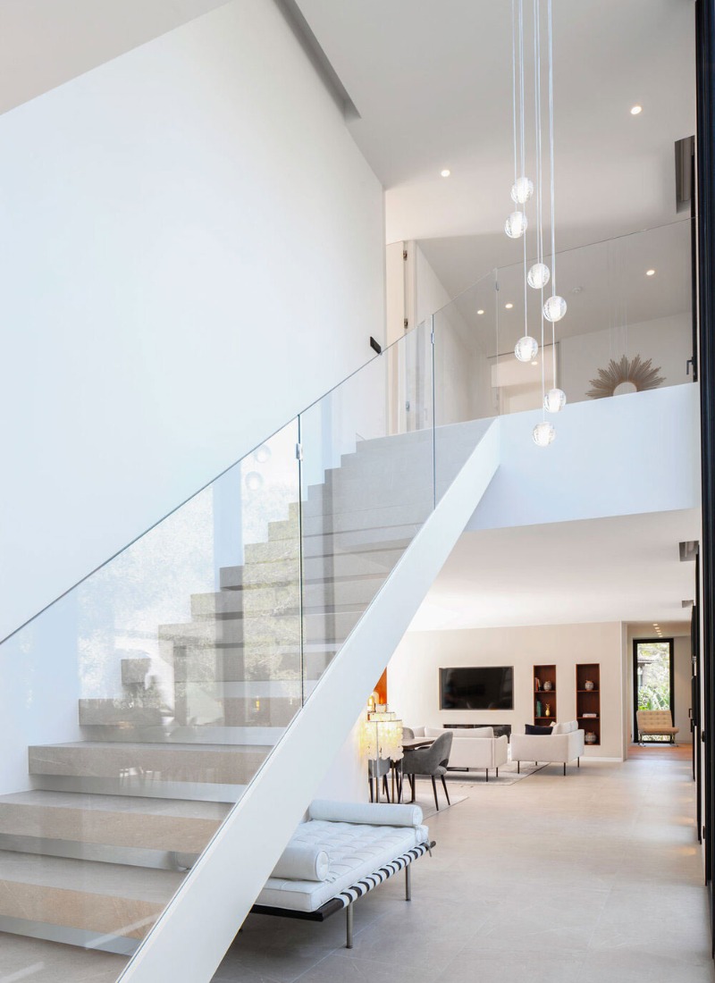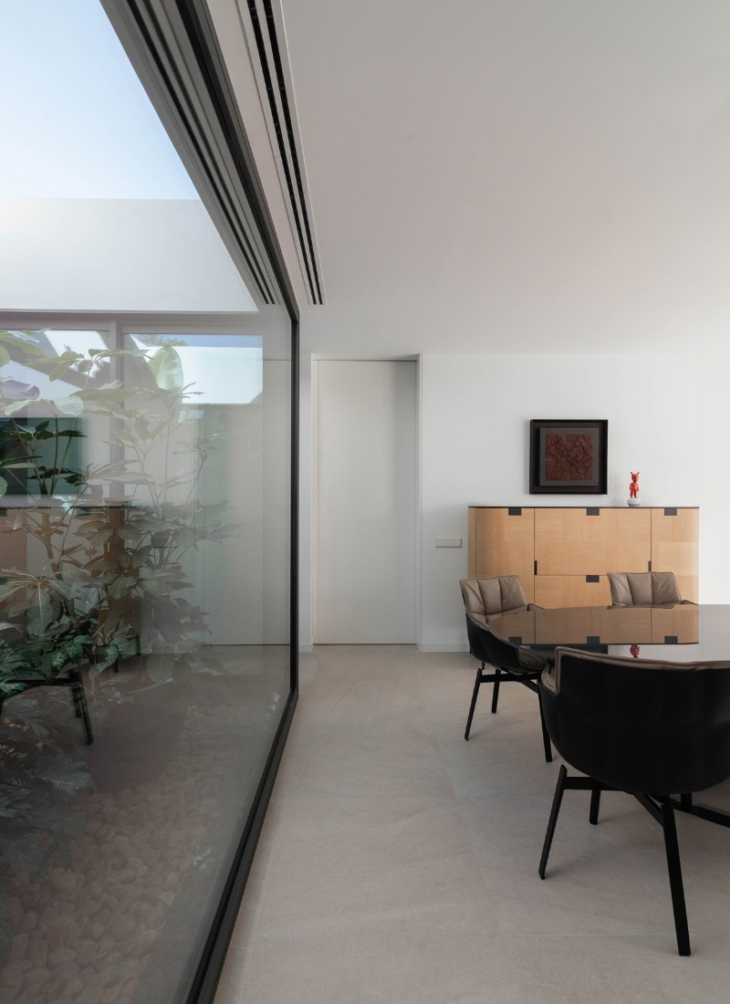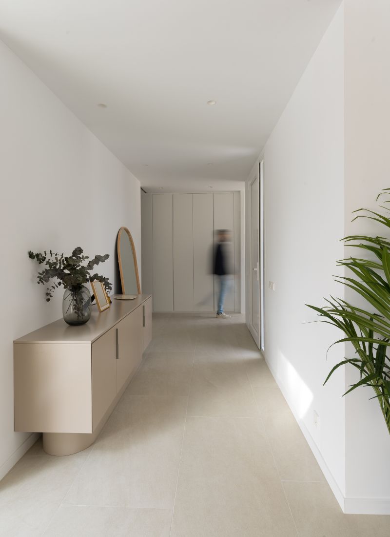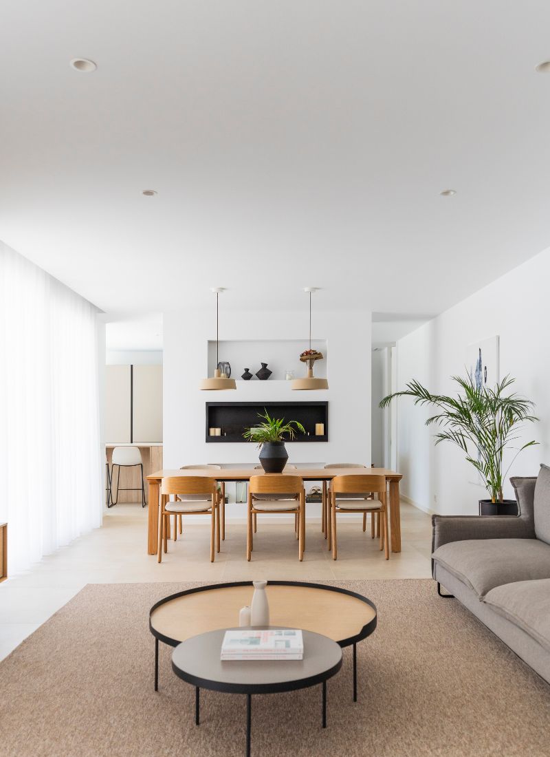 The texture of natural stone is repeated from the façade to the interior of the house, bringing warmth to the domestic space. Soft tones are reflected in the interior design, both in the architectural textures and in the furniture that complements the design.