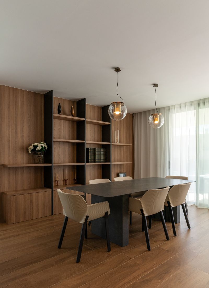 Interior design project with wood as the main feature. With its striking lines and aesthetic combining softness and strength, this high-end house has very bold shapes, while blending perfectly into its surroundings.