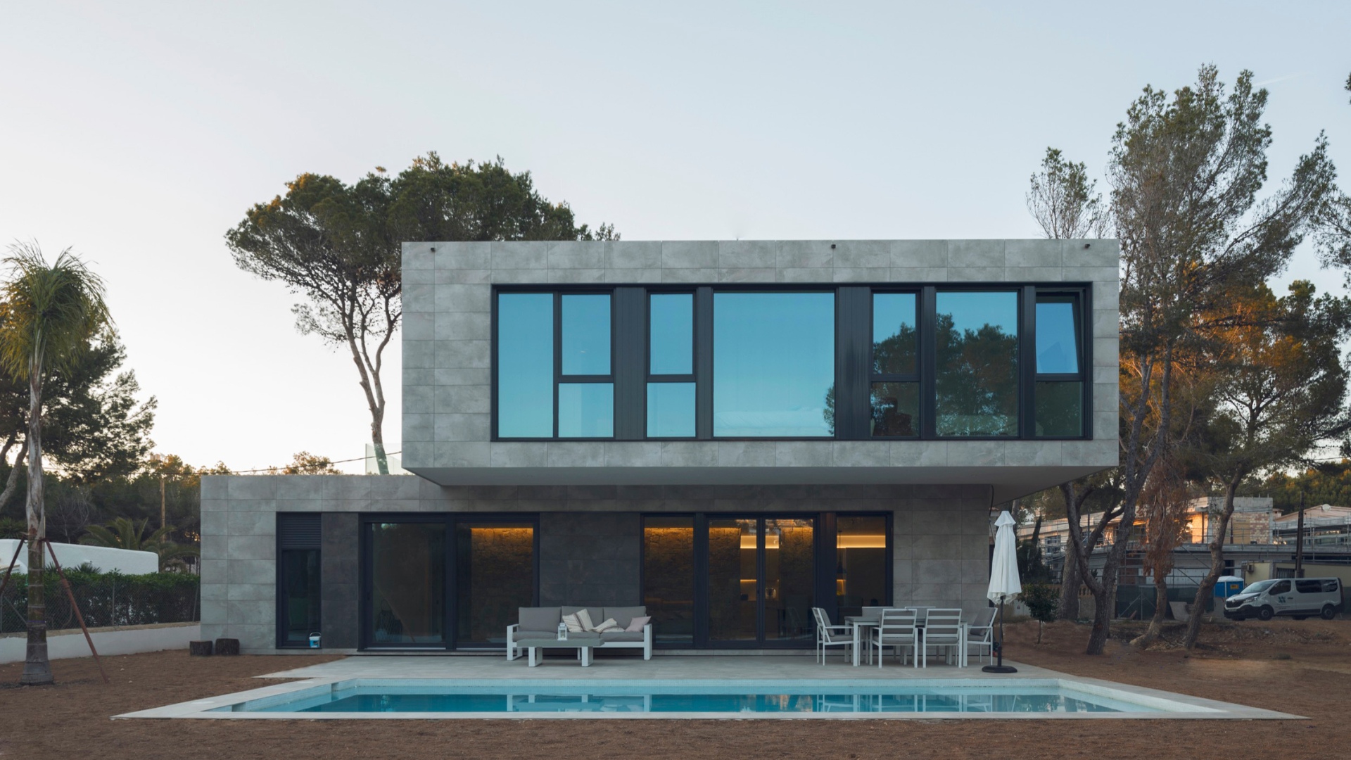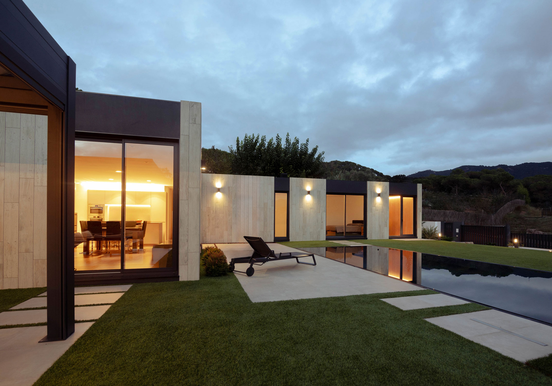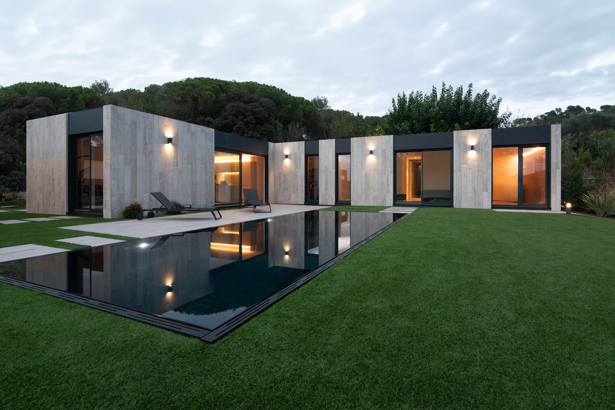 The environment nearby the city of Barcelona joins the delight of the sea breeze with the Mediterranean forest. This is a personalization of the Carcassonne Model by inHAUS where a modular concrete house contains everything you need for a family.