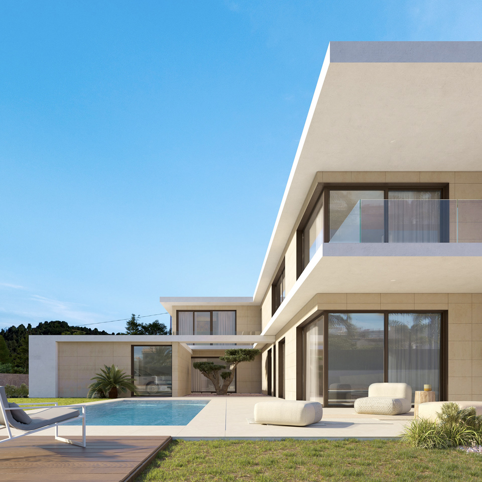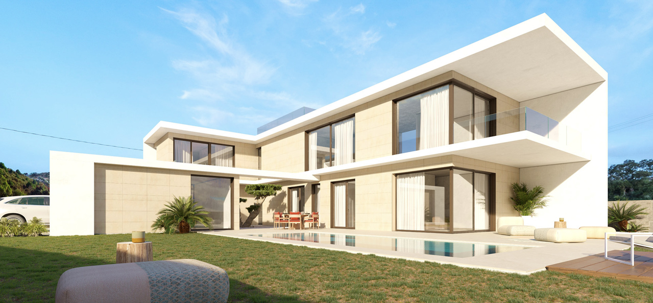 HAUS luxury villas – Bordeaux model A design house located in the Mallorca island. A house that captures the charm of the Balearic Islands, thanks to the combination of natural materials, such as stone and wood, and its refined lines.