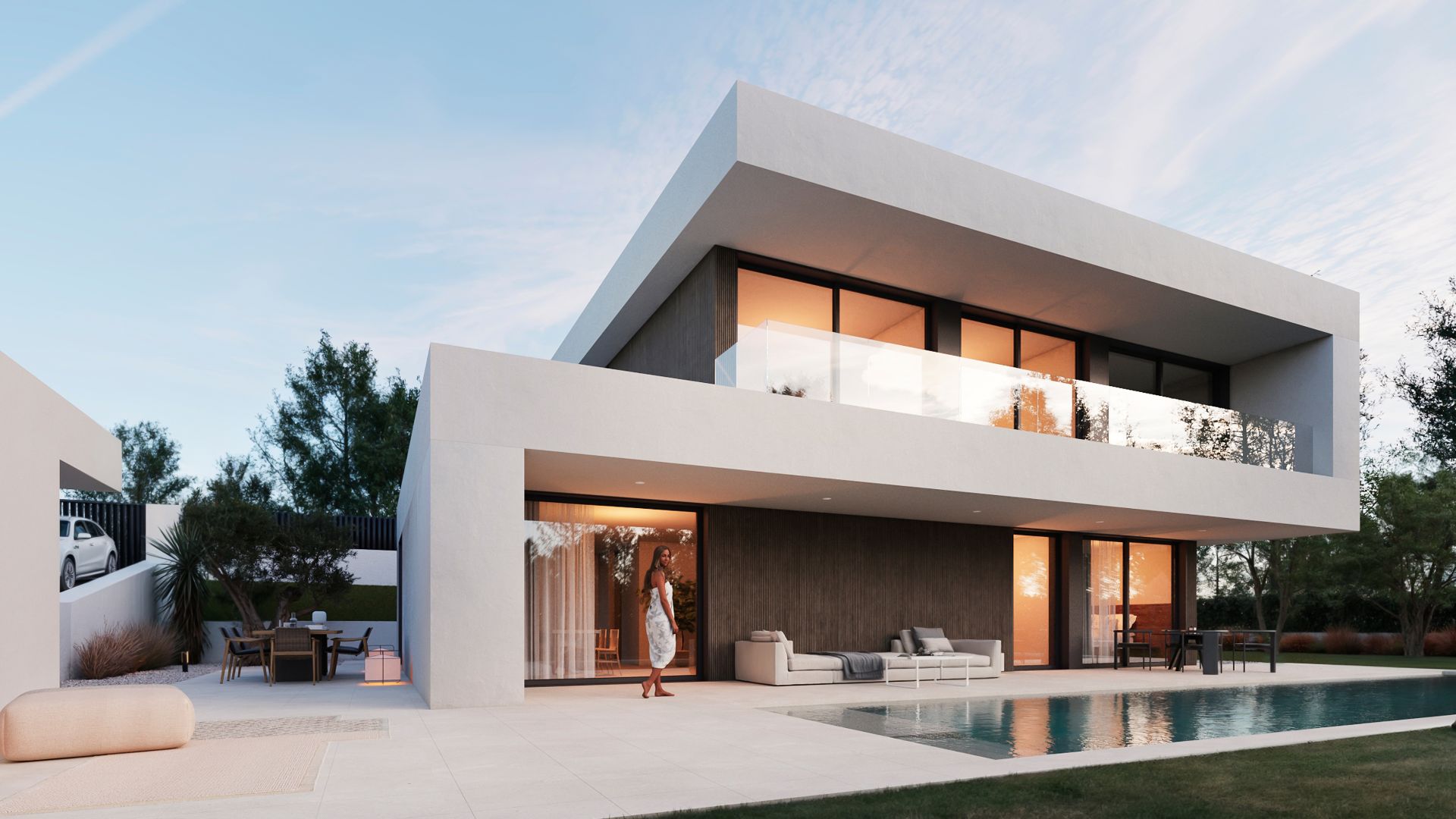 Le projet s’inspire du modèle Saint-Tropez du catalogue 111 d’inHAUS. Un modèle au programme conventionnel et à la distribution compacte en forme de « O », fonctionnelle et simple. Grande présence de contrastes dans les matériaux et les espaces ouverts. Au total, 4 chambres, dont une suite complète, réparties sur deux étages. Son design extérieur se distingue également par ses porches et le jeu avec la façade en forme de S et le volume que celle-ci apporte à la maison. Idéal pour les terrains avec vue.