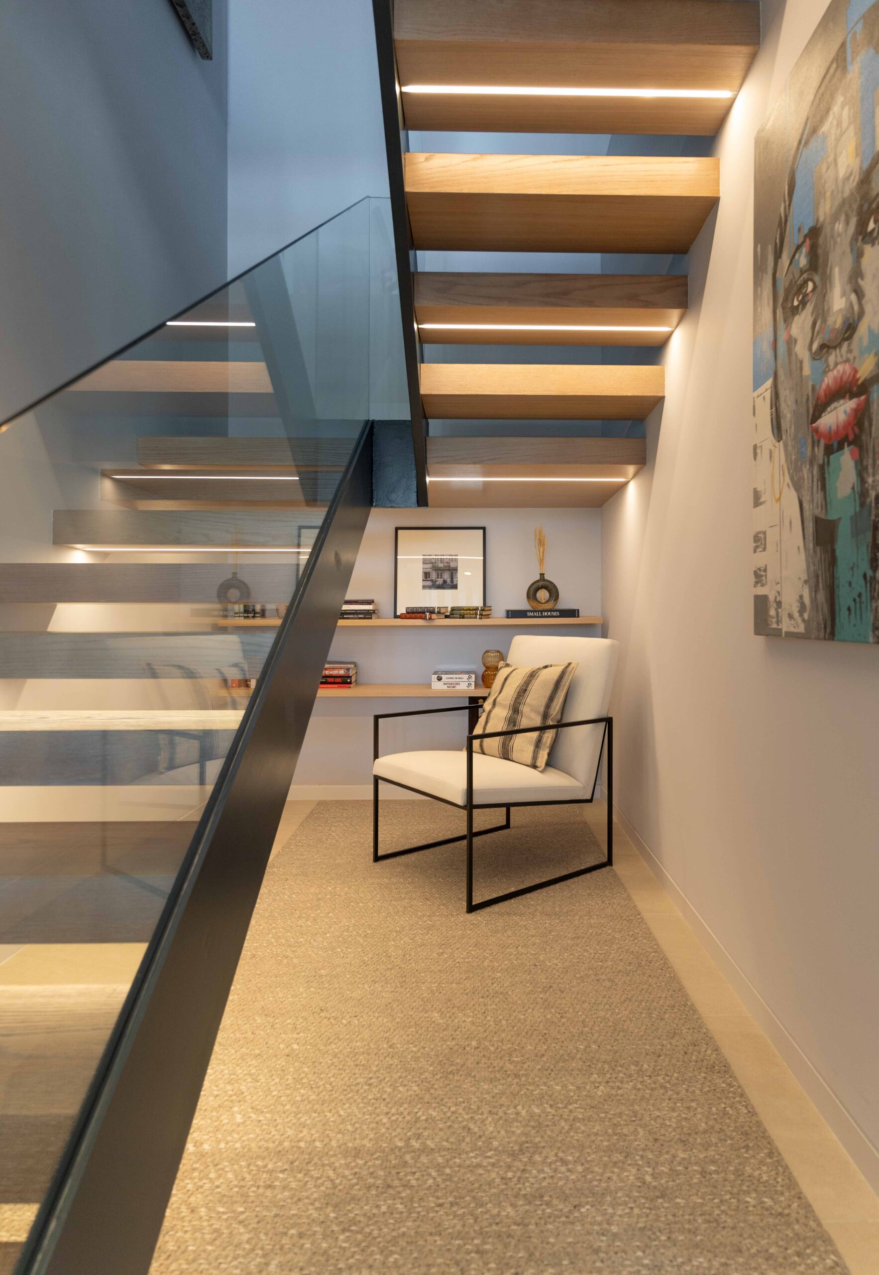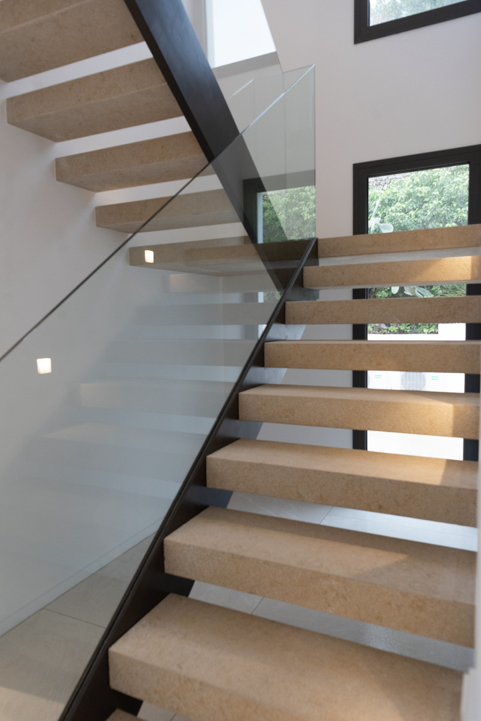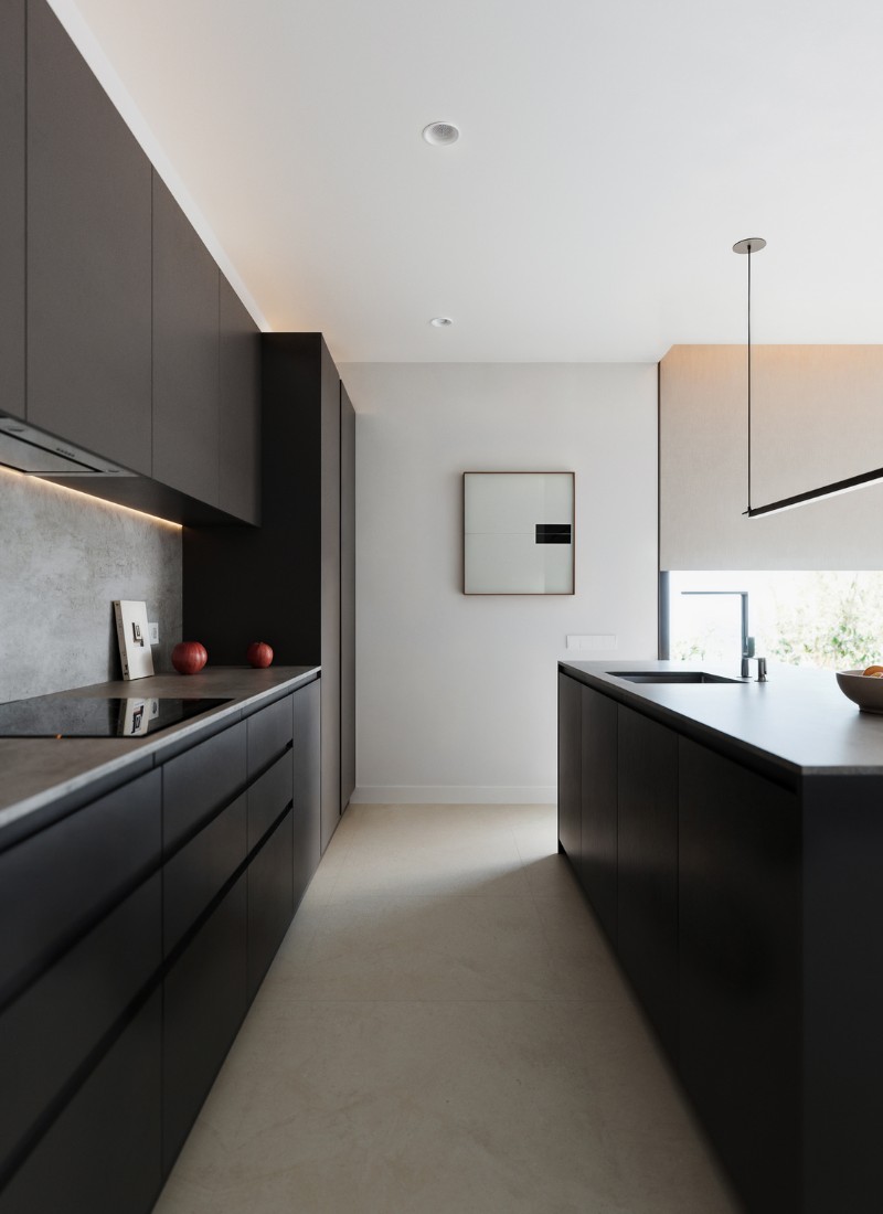 Projet en cours dans le Pays basque espagnol. Ses propriétaires sont un couple qui vit actuellement en Chine. La maison se distingue par ses grandes baies vitrées et ses matériaux sombres. Au total, 220 m² répartis entre le rez-de-chaussée et le premier étage, auxquels s'ajoute un sous-sol de 75 m². Trois étages reliés par un escalier sculptural à marches en porte-à-faux et triple hauteur, qui relie visuellement l'ensemble de la maison.