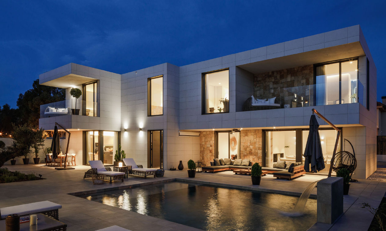 Une maison de deux étages en forme de L, d’une superficie totale de 406 m². Fabriquée sur mesure, en respectant scrupuleusement les spécifications du client. Dans ce cas, Maisons inHAUS agit en tant que constructeur d’un projet élaboré par un autre cabinet d’architecture. Le système inHAUS, reconnu pour sa grande polyvalence, a été habilement appliqué pour s’adapter avec fluidité aux spécifications de ce projet.