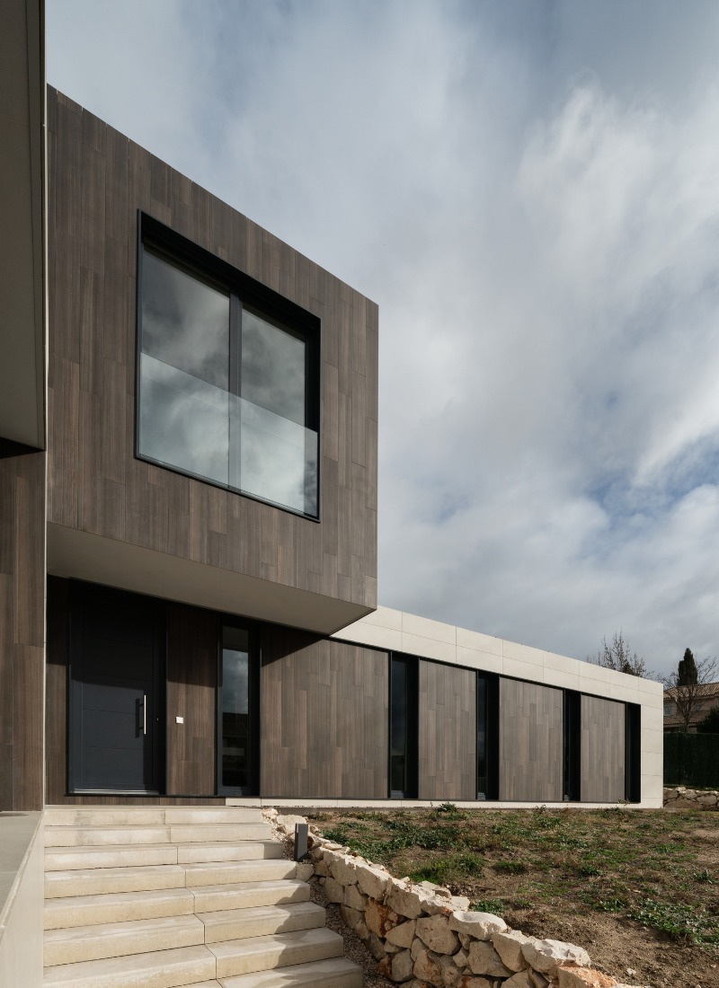 Nous avons trouvé l’une de nos maisons les plus spéciales. Divisée en deux étages avec un terrain présentant un dénivelé considérable et une distribution en forme de O. Ses volumes imposants soulignent les lignes et l’utilisation de matériaux nobles tels que le bois technologique.