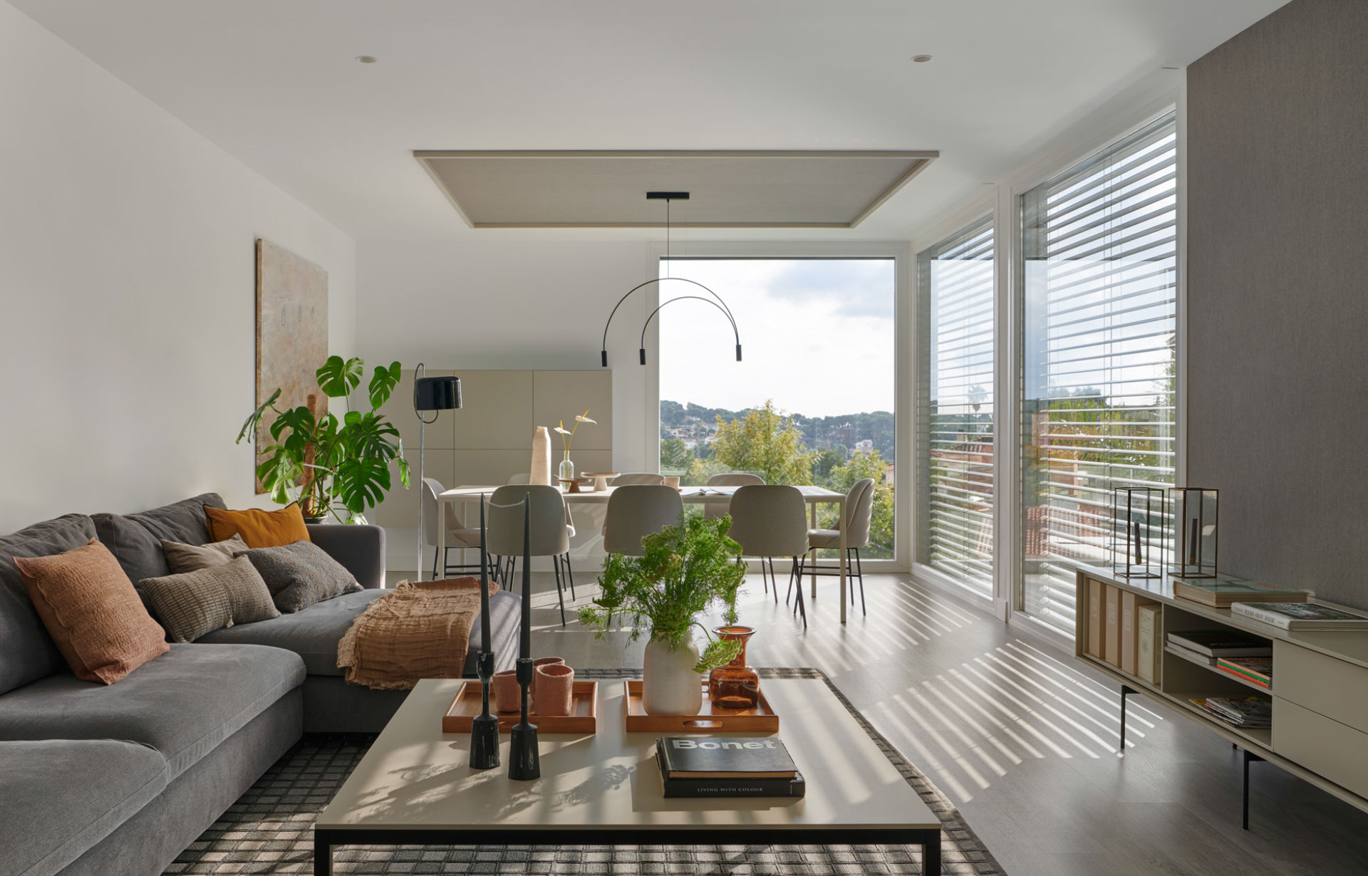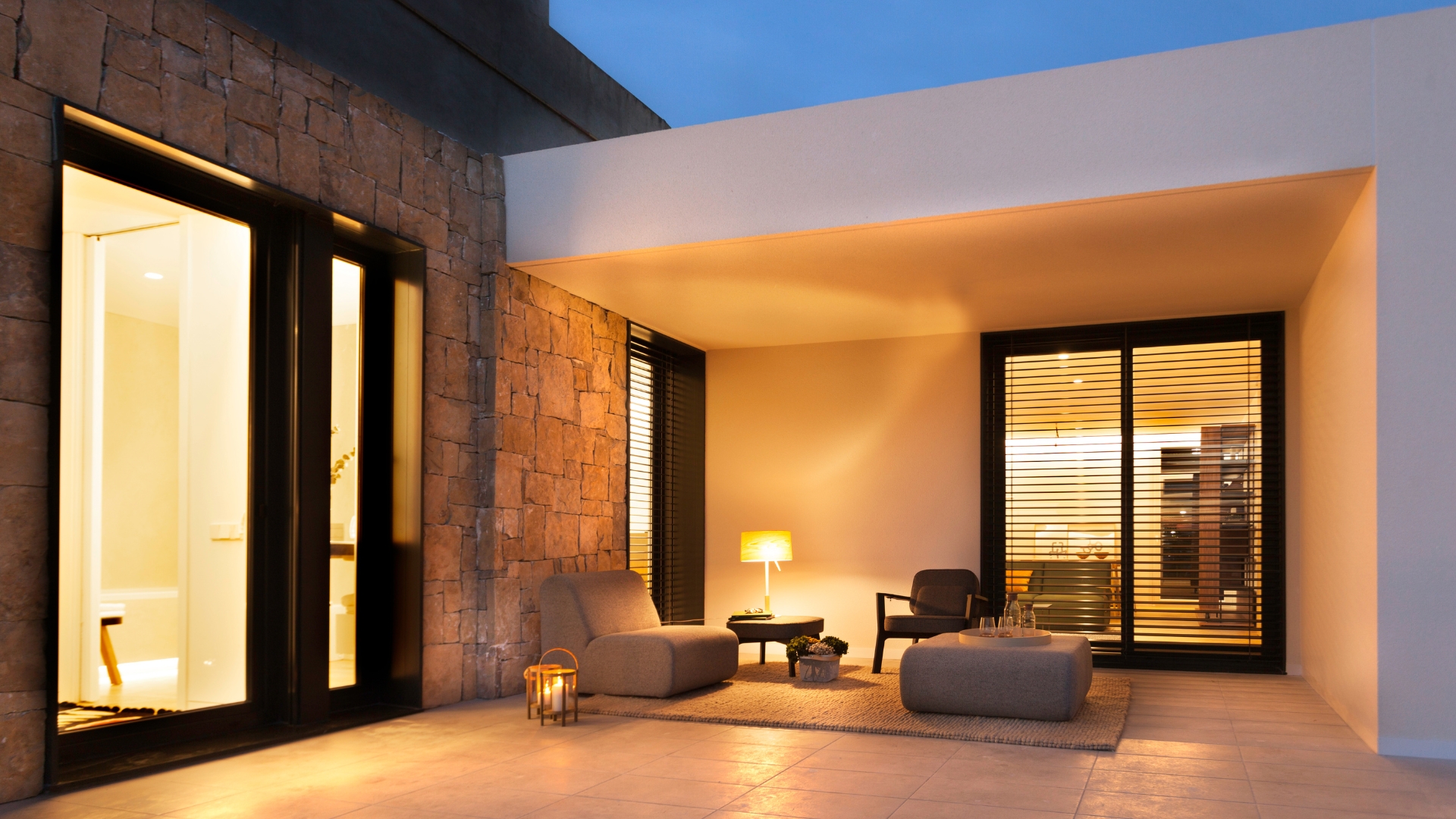 Maison aux tons clairs et matériaux en pierre naturelle