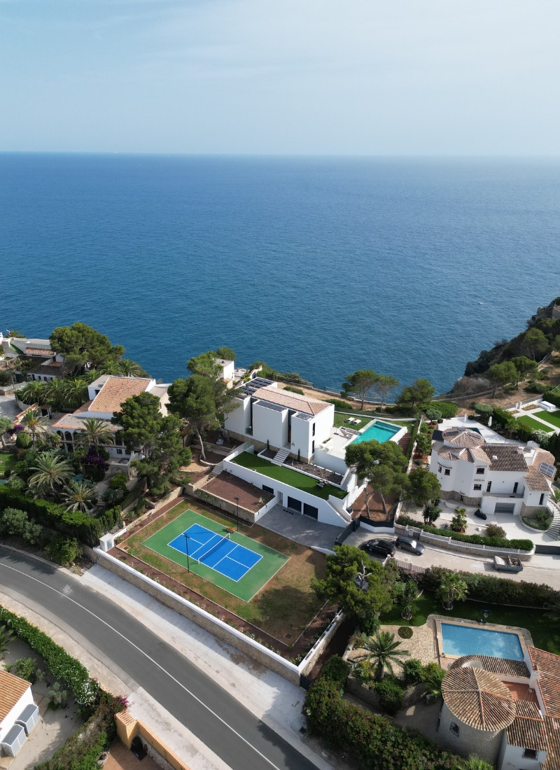 Villa modulaire d'été à Jávea, avec les meilleures vues de la Costa Blanca, conçue et dessinée sur mesure pour les réunions familiales. Avec ses 572 m², cette villa exclusive spectaculaire dispose d'un piano, d'une salle de sport, d'un terrain de pickleball, d'une piscine chauffée et d'une multitude d'espaces de rêve destinés à la connexion familiale.